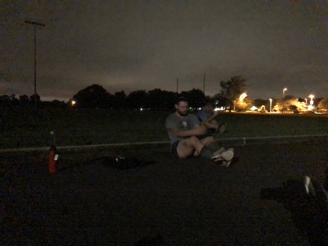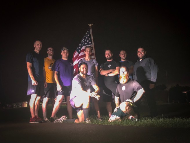 Teams of 2 PAX alternating between a rep exercise and a bear crawl or walking lunges the width of a football field and back.