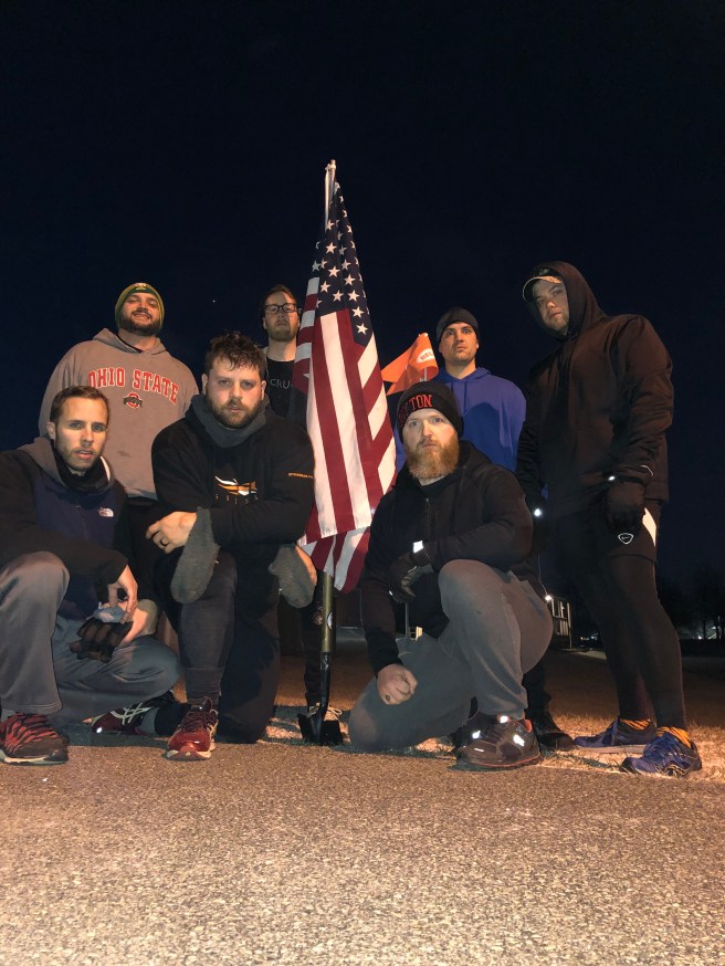 5 Burpees, bear crawl, 5 burpees, bear crawl, 5 burpees, bear crawl up hill, 5 burpees, jog down hill, 5 burpees, bear crawl up hill, 5 burpees, jog down hill, 5 burpees