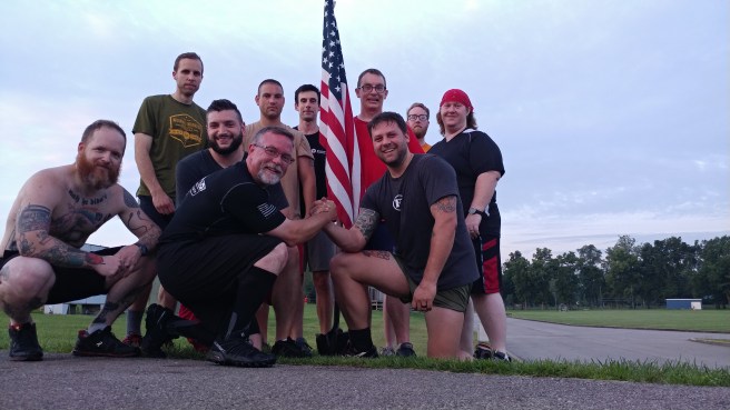 We moseyed over to the bottom of the hill . We performed 1 Burpee at bottom of hill, ran up hill, performed 2 Burpees, ran down the hill, performed 3 Burpees and so on and so forth until we reached 10 Burpees at the top of the hill. Then we worked our way back down starting with 9 Burpees at bottom of hill (100 total Burpees if you’re counting!). Picked up the six and moseyed back the long way to the shovel flags! Beast Mode!!!