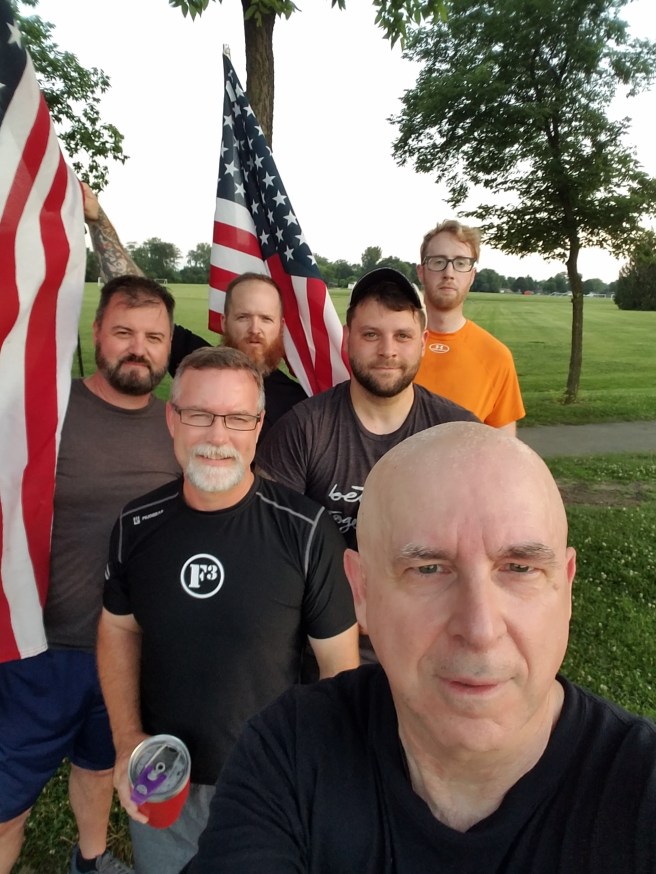 While 1 Pax walked/moseyed the length of the parking lot doing a Farmer’s Carry with a 50# dumb bell, the remaining Pax performed reps until Pax #1 returned of: