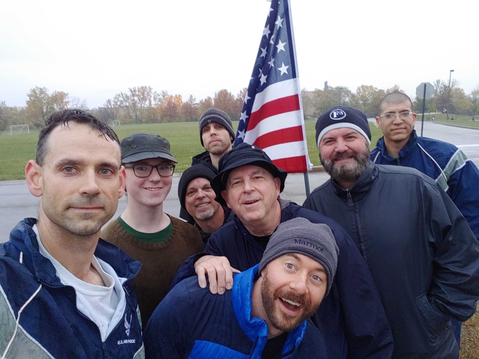 Mozy to the flag, finished up with 5minutes of burpees, stretches, and cool down walk.