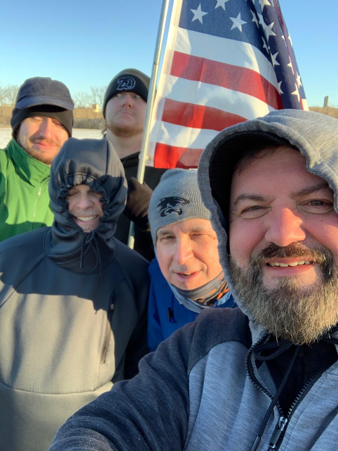 The burpee challenge, 60 seconds on the clock, progression of burpees from 1-15, each round with 20 toe taps on parking blocks, sprint from one side of lot and back.