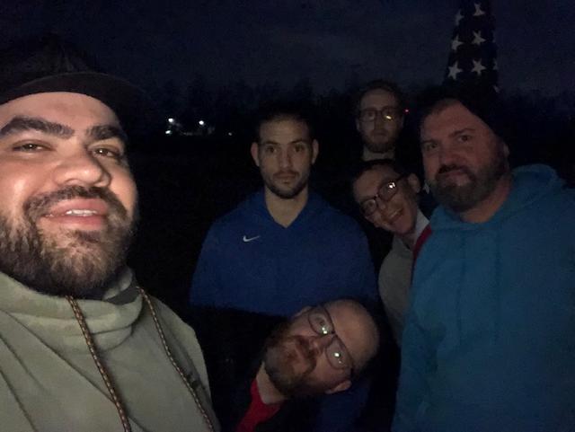 The work: Ladder 1-5 starting with deadlifts, bent over rows, front squats then run 60ish yards and back after each set. Ended with a team carry of the 80, alternating every 50 steps. Anthill is a show off. Haha.