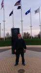 We moseyed around the track taking turns calling out various exercises for various reps at checkpoints. Exercises included Jump Squats, Merkins, Burpees, V-Ups, SSHs, as well as a few others escaping my memory. When we arrived at the pull-up bars we performed Pullups x 10, Chin-ups x 10, Hanging Knee Raises x 10. From there, we moseyed over to the memorial. There we completed Triangle Merkins x 20ish, One-Legged Squats x 20/leg, Incline Merkins x 20, Decline Merkins x 20. Then we walked down the hill and sprinted up to finish the beatdown.