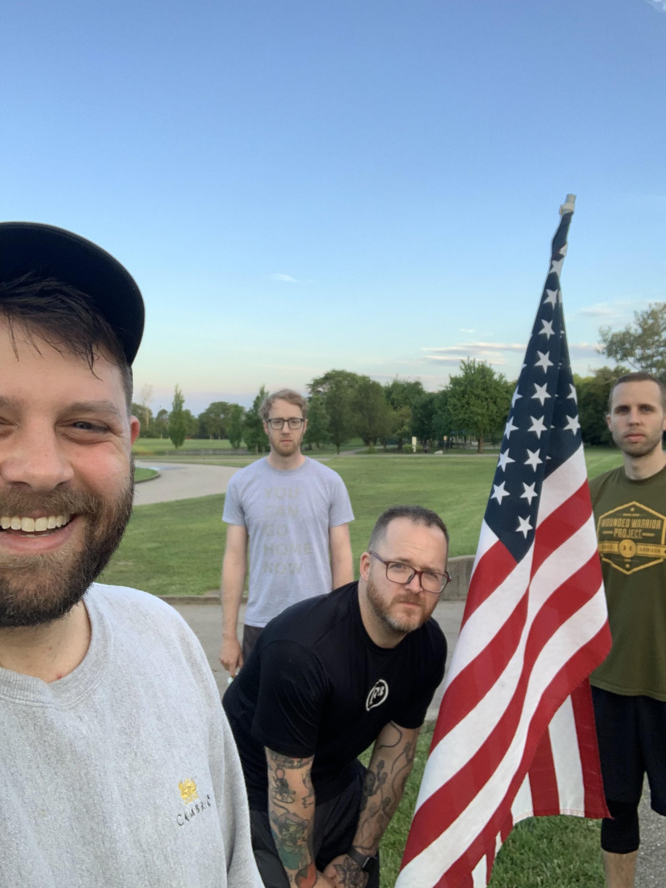 We ran around the pond between each set. Before each set we would preform 10 block push ups.