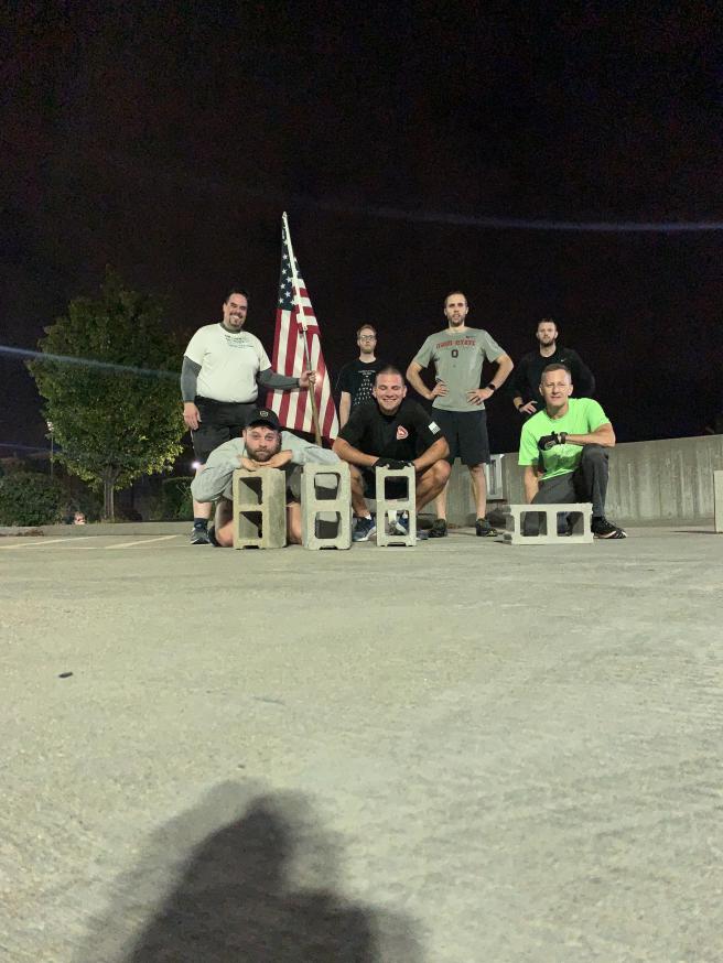 - 150 foot block suicide sprint. Stacking block squats at every parking line. A total of 136 reps. There was the offer of Blerkins instead, but squats were selected universally. Swobbles “modifies” with Burpees 😂🤷🏻♂️