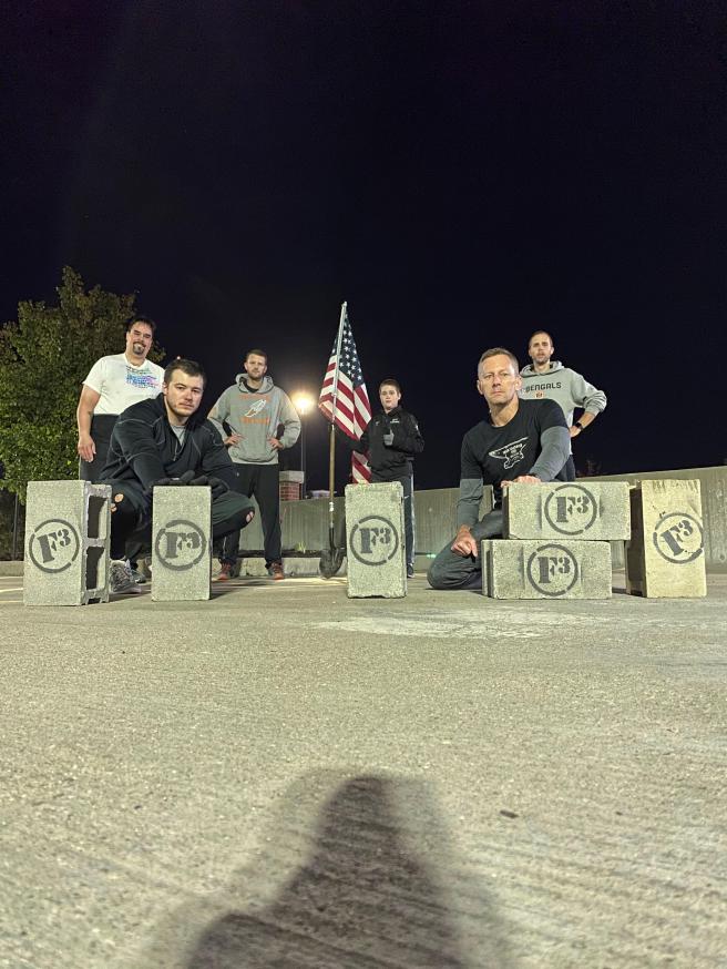 Repeated cycle for 3 rounds. On last round did rifle carry to last light post before burpees