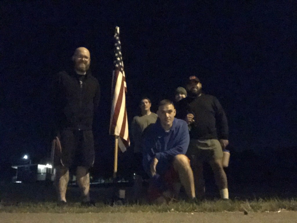Stretch, Blocks , Suicide sprint 4 light poles with pre and post 10xMan makers; Suicide sprint 3 poles with pre and post 20x sit-ups ; suicide sprint 2 poles with pre and post 40x block squats.