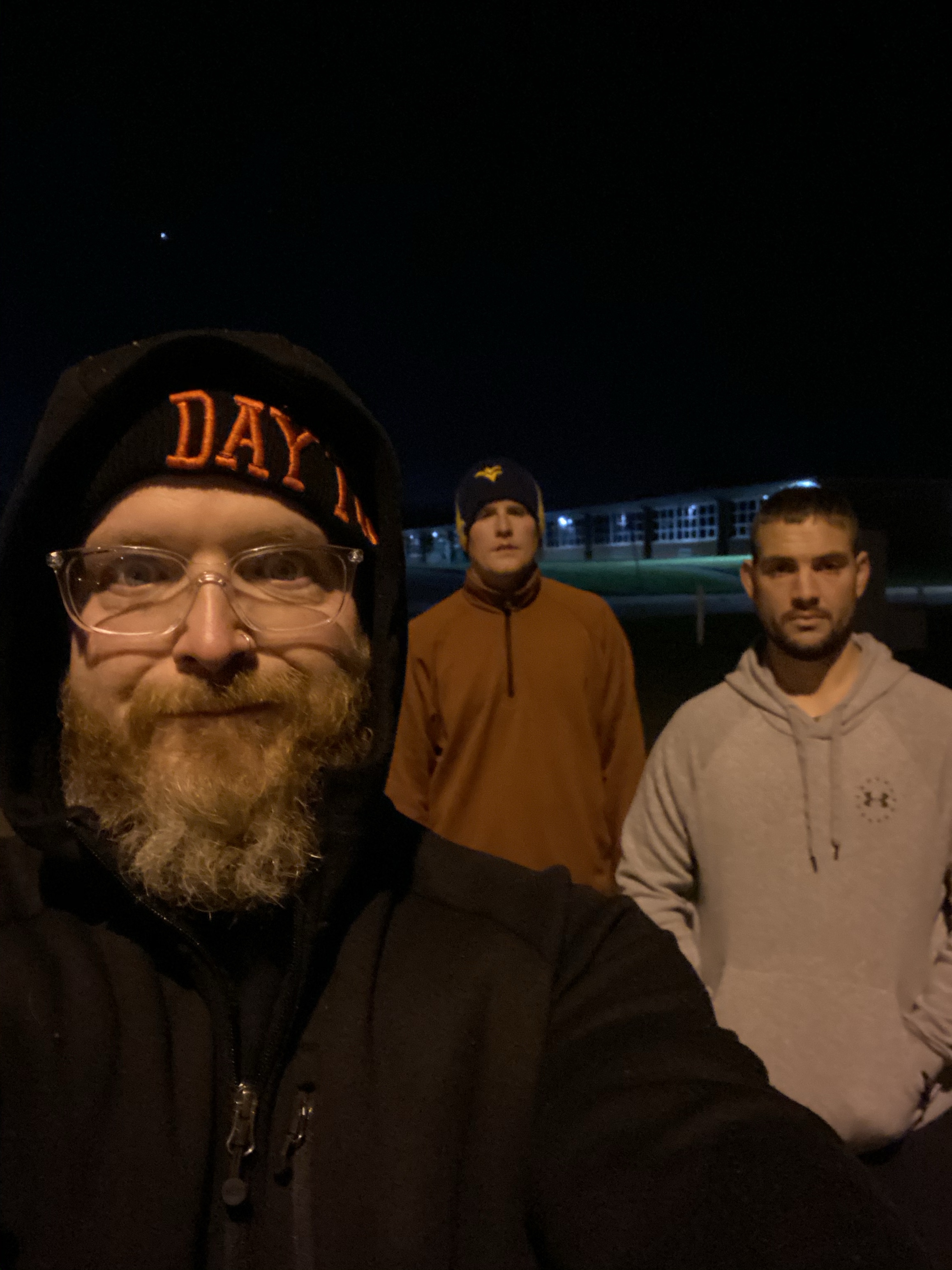 Mosey to start position. We had some time left so that meant a lap around the track. Stop at each light pole.