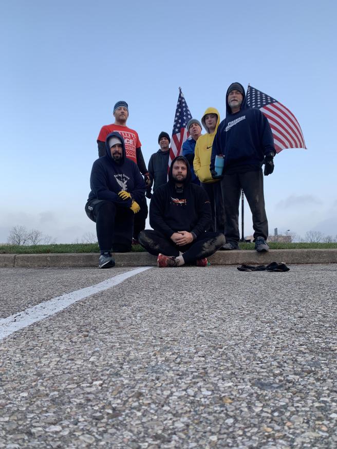 The workout consisted of the following: PAX teamed up and take turns flipping BB to 100 flips. Other teams – 25 yard bear crawl and back. Switched to lunges after first 50. Preformed 2 sand crawls.