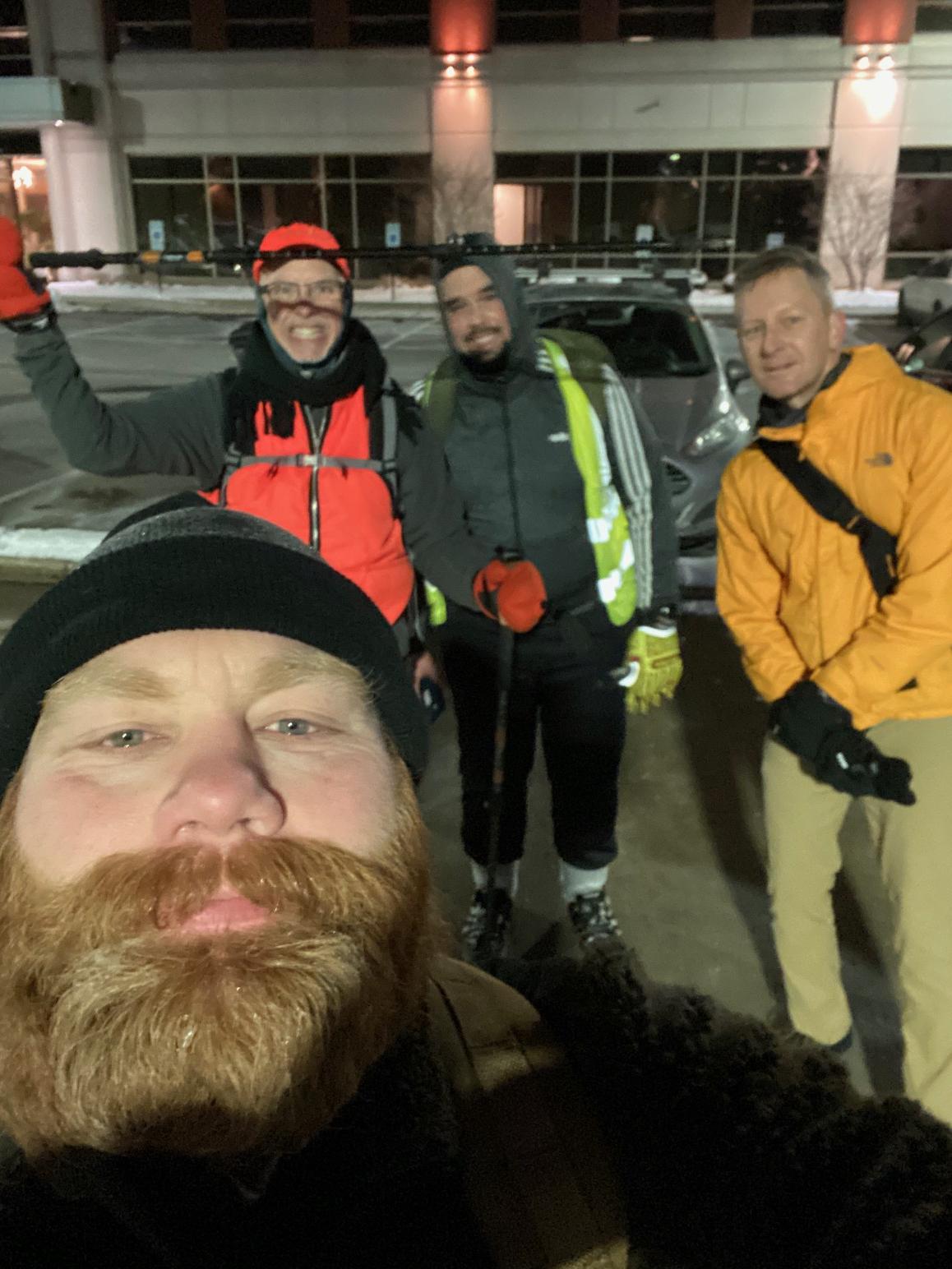 Ruck through the snow for 3 min then run for 1 min repeat for 2.8 miles
