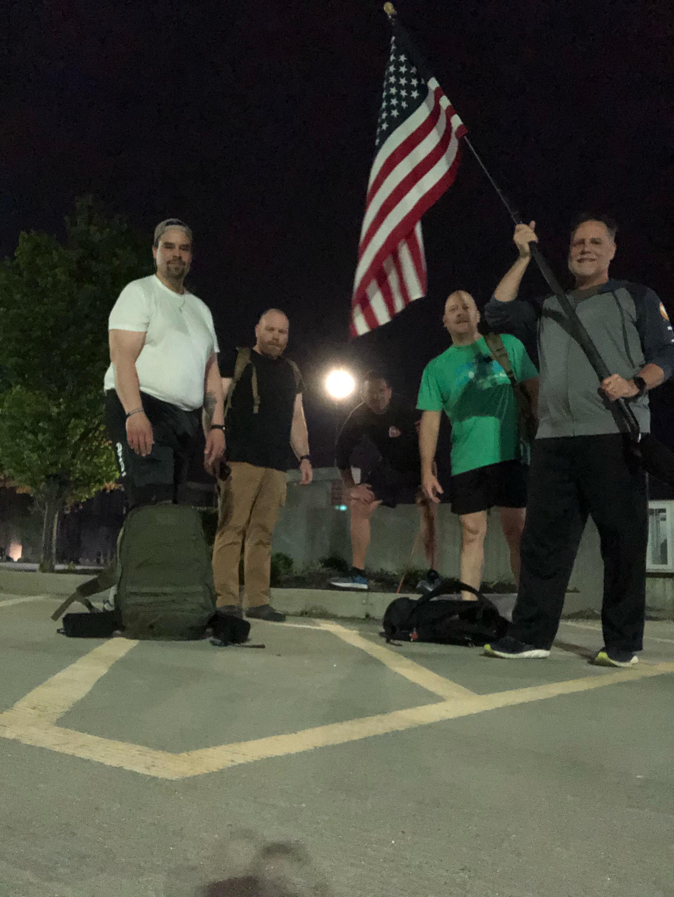 45 min / 2.5 mile ruck round-a-roundabout. Horticulturist Cornelius assessed spring growth.